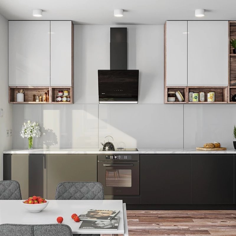 Hotte murale en forme de T au design moderne, la Lonatio allie parfaitement fonctionnalité, performance et style épuré. Sa puissance ajustable avec fonction Boost, ses commandes tactiles intuitives et sa finition élégante en acier et verre trempé (Noir ou Blanc) en font un choix idéal pour assainir l'air des cuisines contemporaines avec élégance.
