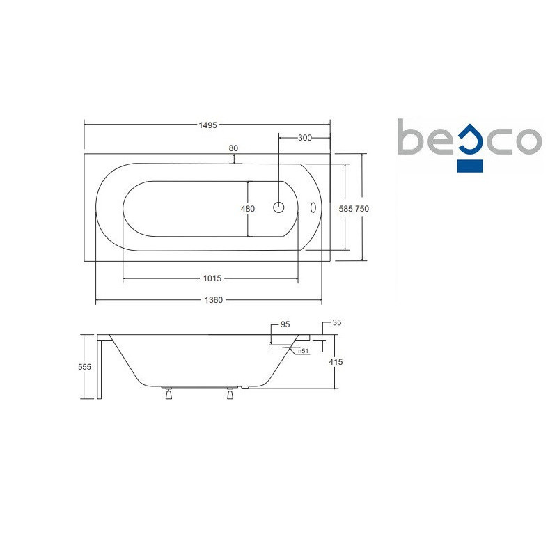 Baignoire rectangulaire INTRICA en acrylique sanitaire, disponible en 150, 160 et 170 cm.