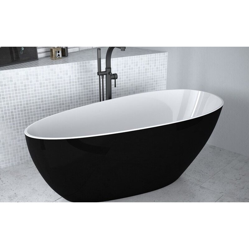 Baignoire îlot au design contemporain en matériau composite M+. Spacieuse et élégante, elle offre un confort optimal avec un volume de 390 L et se décline en finition blanc brillant ou blanc / noir brillance.