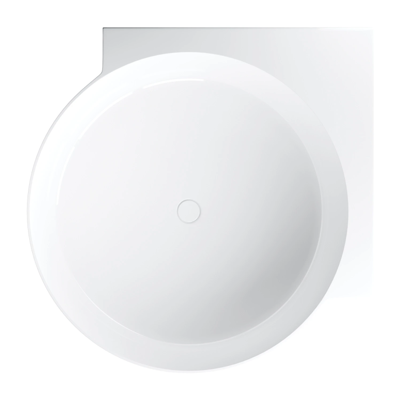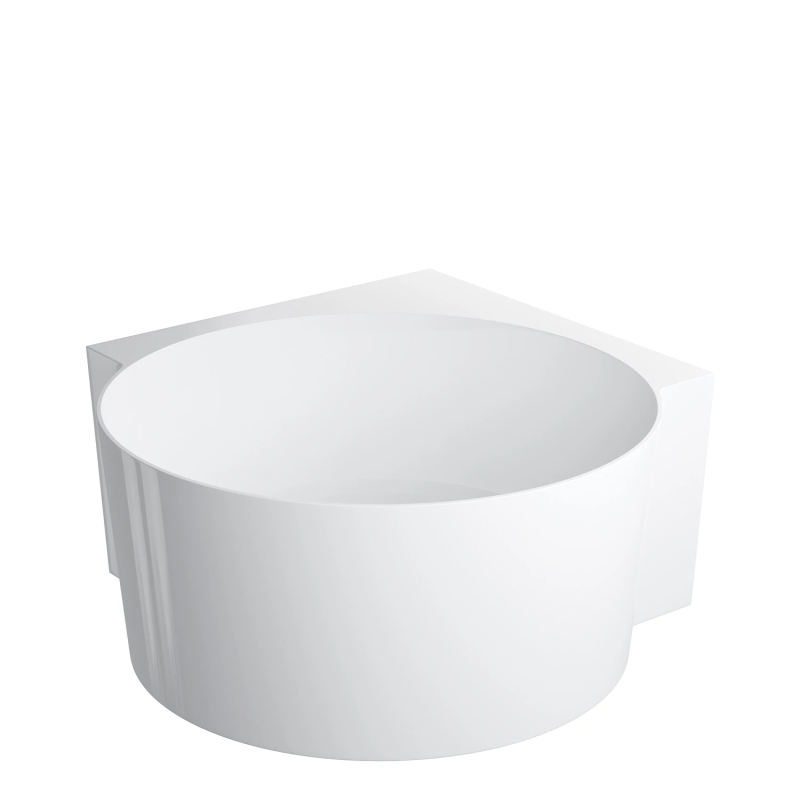 Baignoire îlot au design contemporain en matériau composite M+. Spacieuse et élégante, elle offre un confort optimal avec un volume de 390 L et se décline en finition blanc brillant ou blanc / noir brillance.