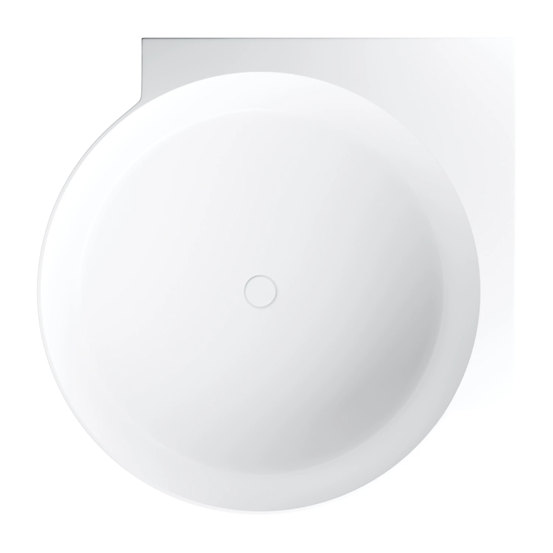 Baignoire îlot au design contemporain en matériau composite M+. Spacieuse et élégante, elle offre un confort optimal avec un volume de 390 L et se décline en finition blanc brillant ou blanc / noir brillance.