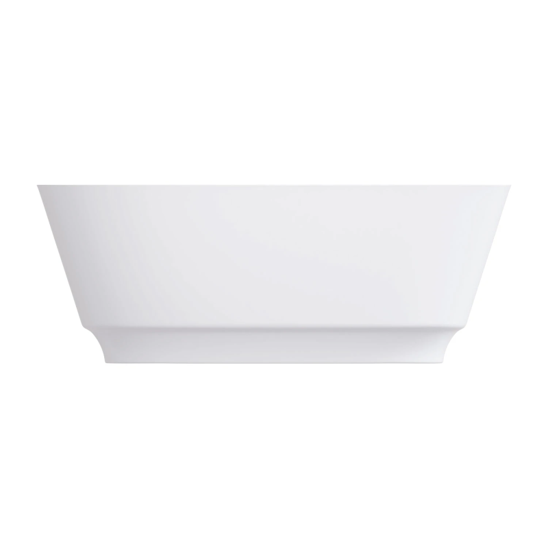 Baignoire îlot au design contemporain en matériau composite M+. Spacieuse et élégante, elle offre un confort optimal avec un volume de 390 L et se décline en finition blanc brillant ou blanc / noir brillance.