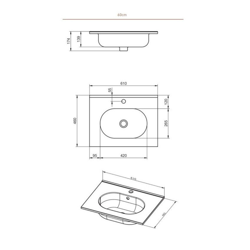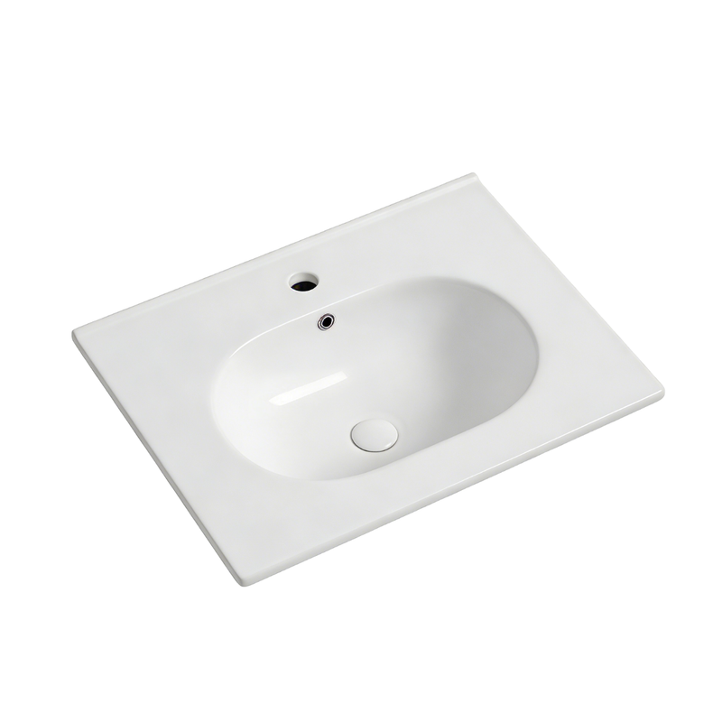 Vasque à encastrer ovale CLEA en céramique sanitaire, dimensions 60 x 46 cm, avec trou de robinetterie et trop-plein intégré.