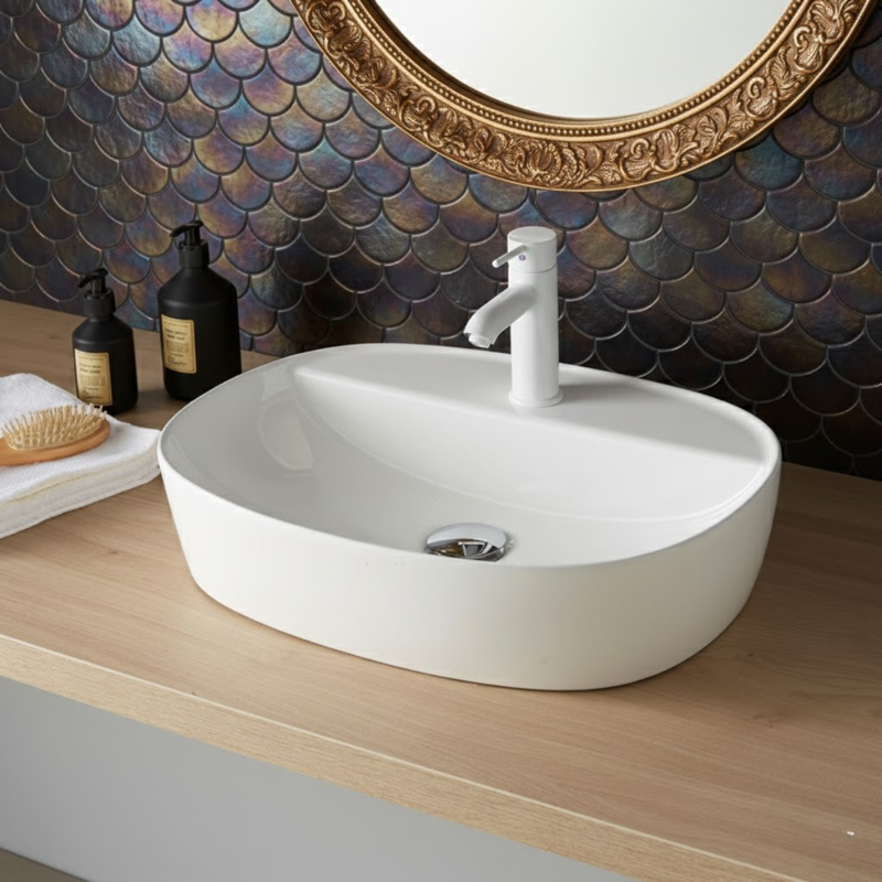 Vasque à poser ovale -50 x 38 cm -Blanc -NOXA