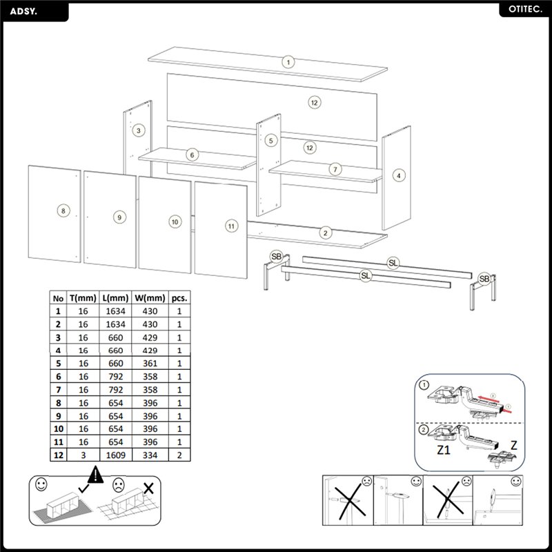 • 1x - Commode - L.163 x H.87 x P.43 - ADSY