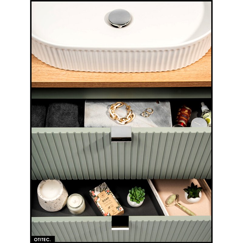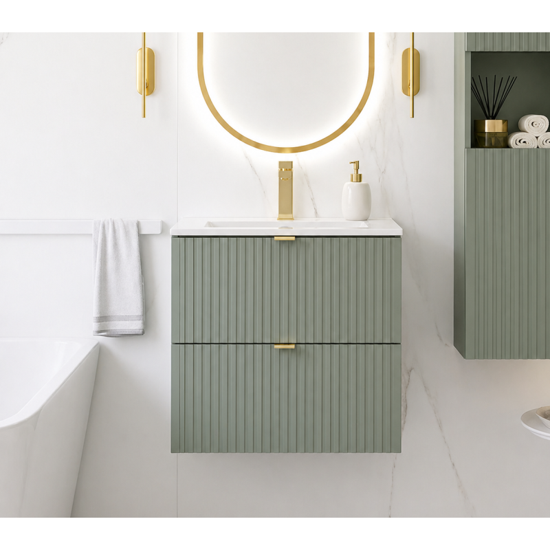 • Modularité exceptionnelle : Une gamme complète incluant meubles sous-vasque, colonnes hautes, armoires miroir et étagères, pour créer des aménagements parfaitement adaptés à chaque espace.