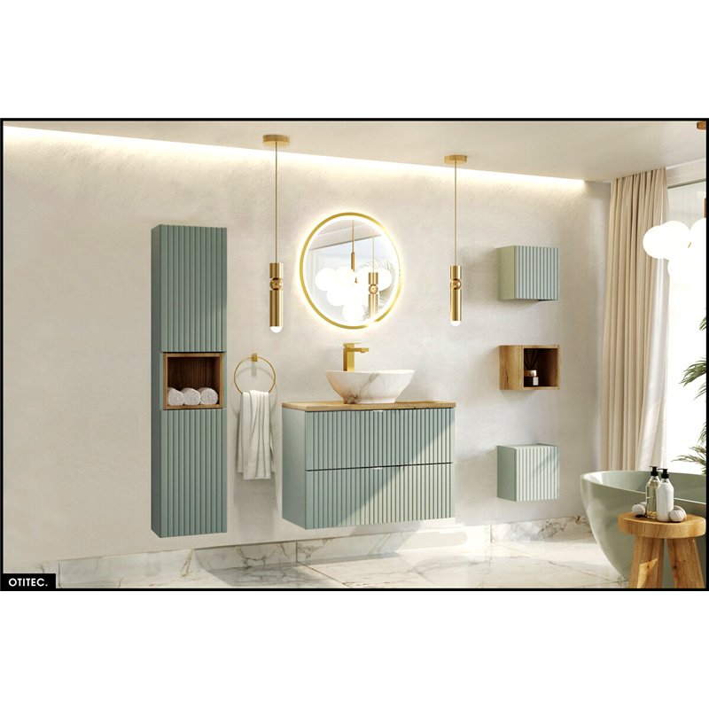 • Modularité exceptionnelle : Une gamme complète incluant meubles sous-vasque, colonnes hautes, armoires miroir et étagères, pour créer des aménagements parfaitement adaptés à chaque espace.