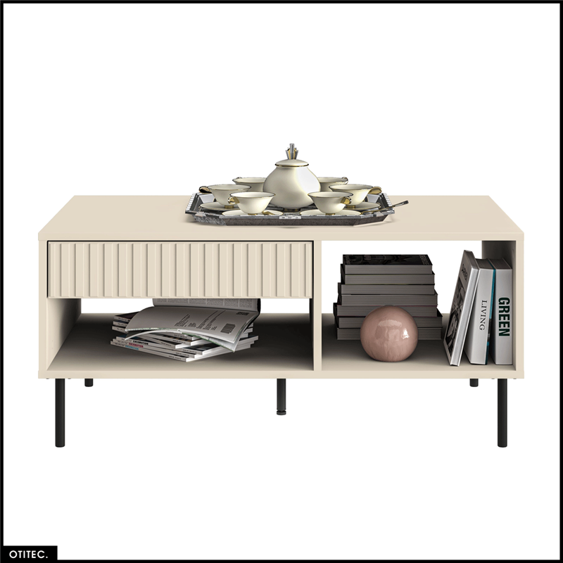 SOFY | Table basse - 100 cm - 1 tiroir - 2 étagères ouvertes