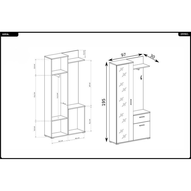 Choisissez la collection LUXA et profitez de la livraison offerte par OTITEC. Un meuble d’entrée fonctionnel et discret, conçu pour un usage quotidien fiable et durable.