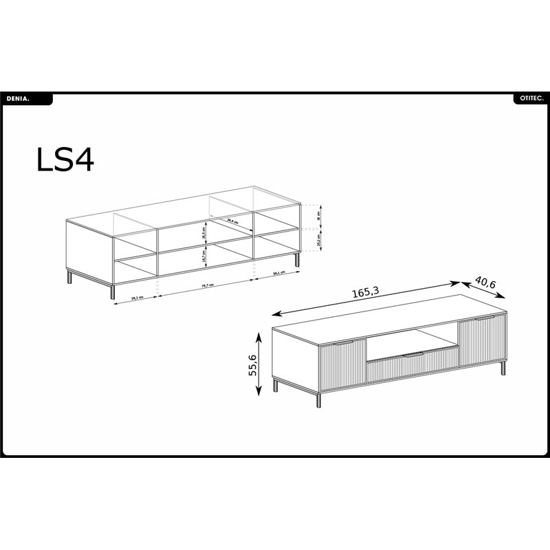 • 1x - Meuble TV - L.165 x H.55 x P.40 cm - Cashmere - DENIA