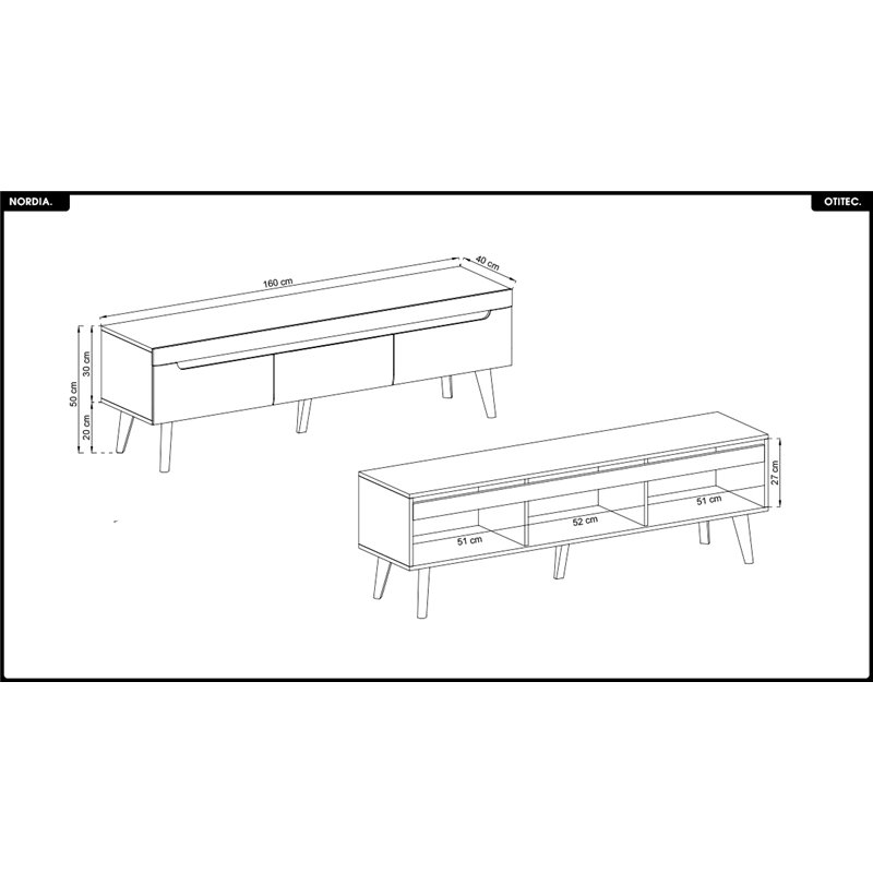 • 1x - Meuble TV - L.160 x H.50 x P.40 cm - NORDIA