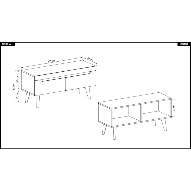 • 1x - Meuble TV - L.107 x H.50 x P.40 cm - NORDIA