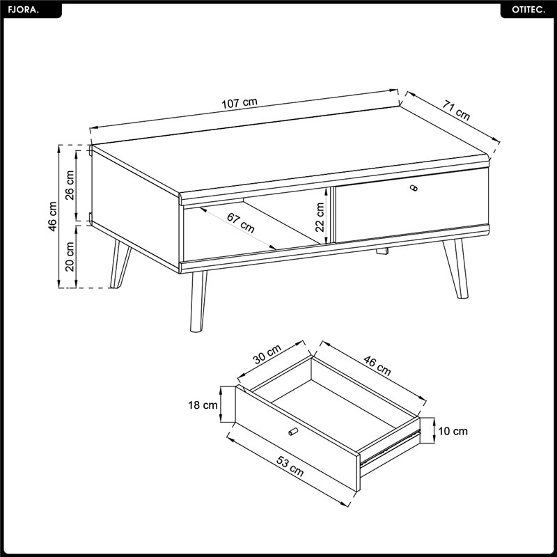 • 1x - Table basse - L.107 x H.46 x P.67 cm - FJORA
