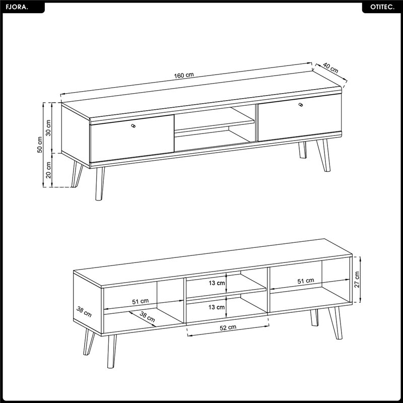 • 1x - Meuble TV - L.160 x H.50 x P.40 cm - FJORA