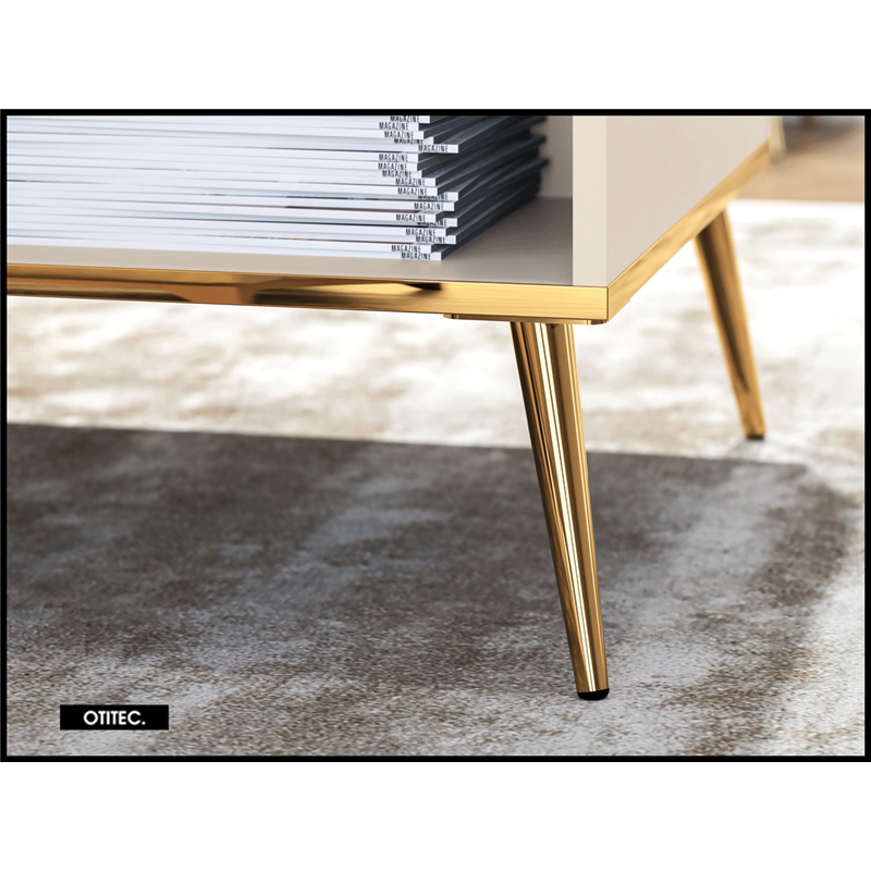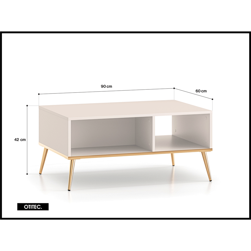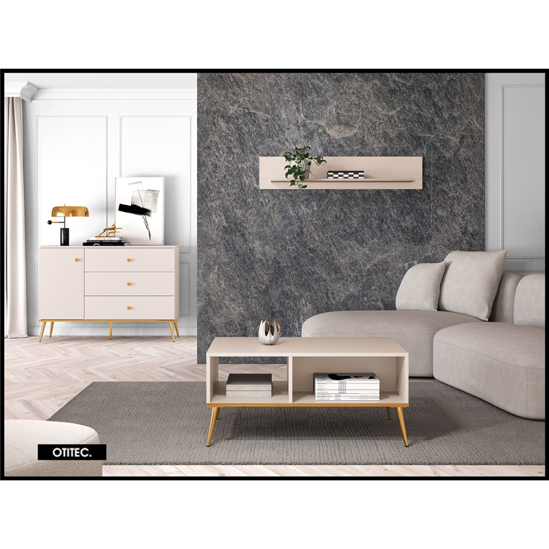 La table basse SELGY est l’élément idéal pour votre salon. Placée au centre de votre pièce, elle devient un incontournable de votre intérieur. Vous pouvez y poser une tasse de café, y déposer un journal et garder la télécommande toujours à portée de main. Son large plateau vous permet d’exposer vos albums préférés, tandis que les deux compartiments spacieux en dessous sont parfaits pour ranger des livres, des bougies ou des petites sculptures. La table repose sur des pieds hauts et stables en métal durable, tandis que les pieds galvanisés à double couche avec une finition dorée assurent une utilisation confortable et durable. Les meubles de la collection SELGY allient haute fonctionnalité et design époustouflant.