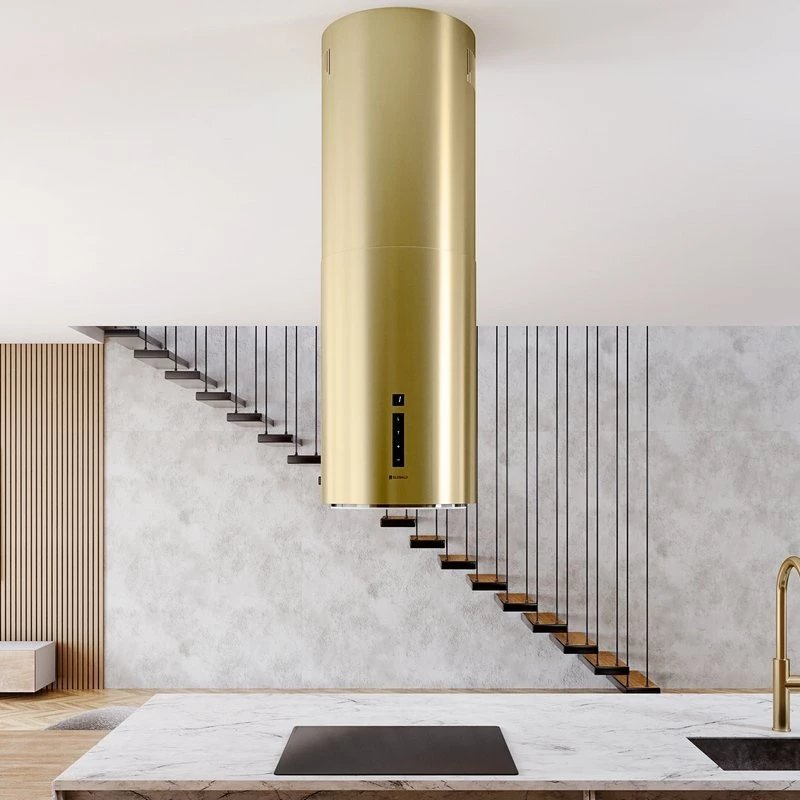 Bien plus qu’un simple appareil électroménager, la hotte îlot cylindrique Wereniso Isola 39.1 est une véritable pièce de joaillerie pour votre cuisine. Son design en "tuba" suspendu incarne la quintessence du style contemporain et de la haute technologie. Capable d'atteindre une puissance d'aspiration de 715 m³/h tout en restant incroyablement silencieuse (dès 46 dB), elle garantit une atmosphère saine et apaisée autour de votre îlot central. Disponible dans des finitions prestigieuses comme le Cuivre Vin, l'Or Caramel, le Noir mat ou le Blanc pur, elle est l'élément de décoration ultime pour les intérieurs exigeants.