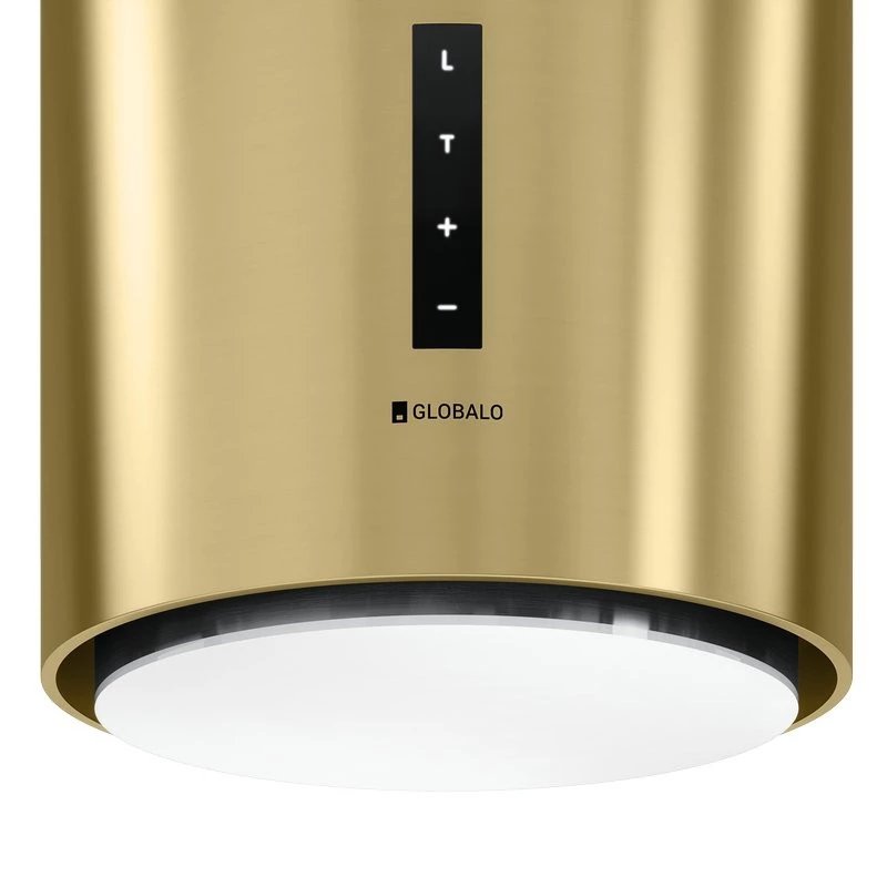 Hotte aspirante Cylindro Isola 39.7 avec une capacité de 742 m³/h et un fonctionnement ultra-silencieux à 46 dB. Disponible en plusieurs couleurs : Noir, Noir Ombre, Bleu, Doré, Vert, Cuivre, Rose, Blanc, Blanc Doré. Commandes Soft-Touch et éclairage LED réglable.