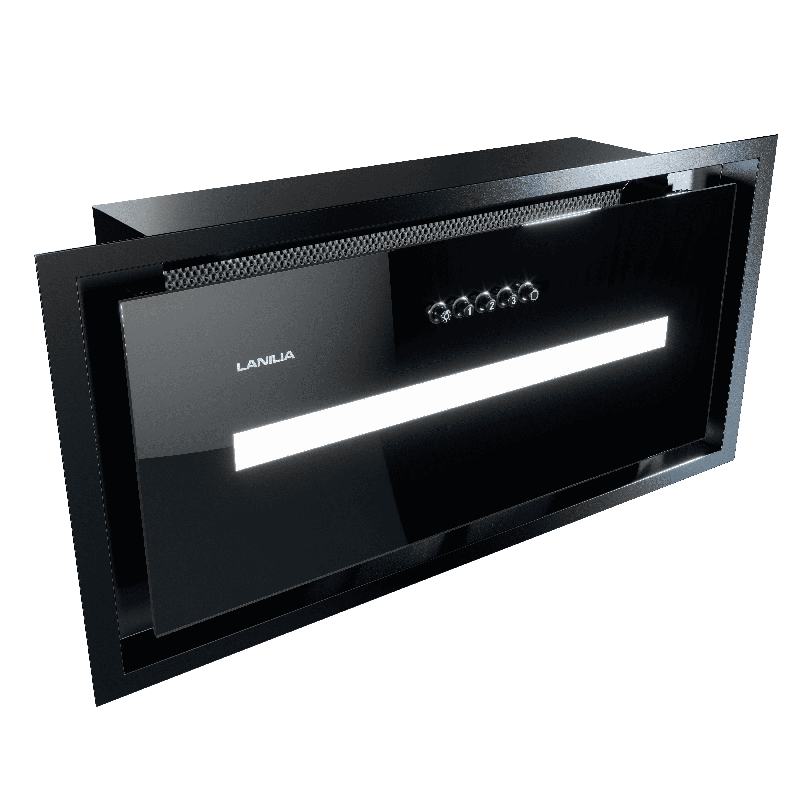 Hotte encastrable haut de gamme avec moteur déporté, offrant une expérience de cuisson ultra-silencieuse. Son design minimaliste en verre trempé, son format ultra-compact (14,2 cm) et son éclairage par bande LED en font l'alliée idéale des cuisines modernes et épurées.