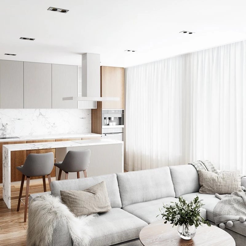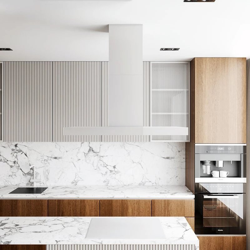Ce modèle classique et élégant est particulièrement recommandé pour les cuisines vastes et lumineuses où l'îlot est le point central de la pièce.