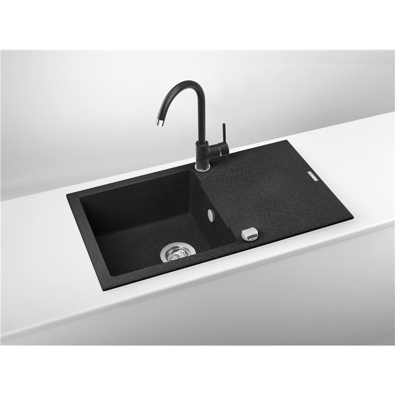 Disponible en finitions graphite, beige, sable, albâtre, graphite métallisé, noir, gris métallisé et anthracite métallisé, l’évier en granit EVORA offre une solution pratique avec égouttoir intégré.