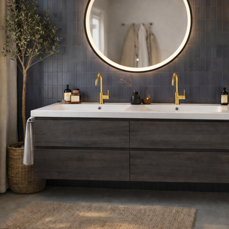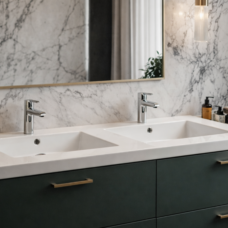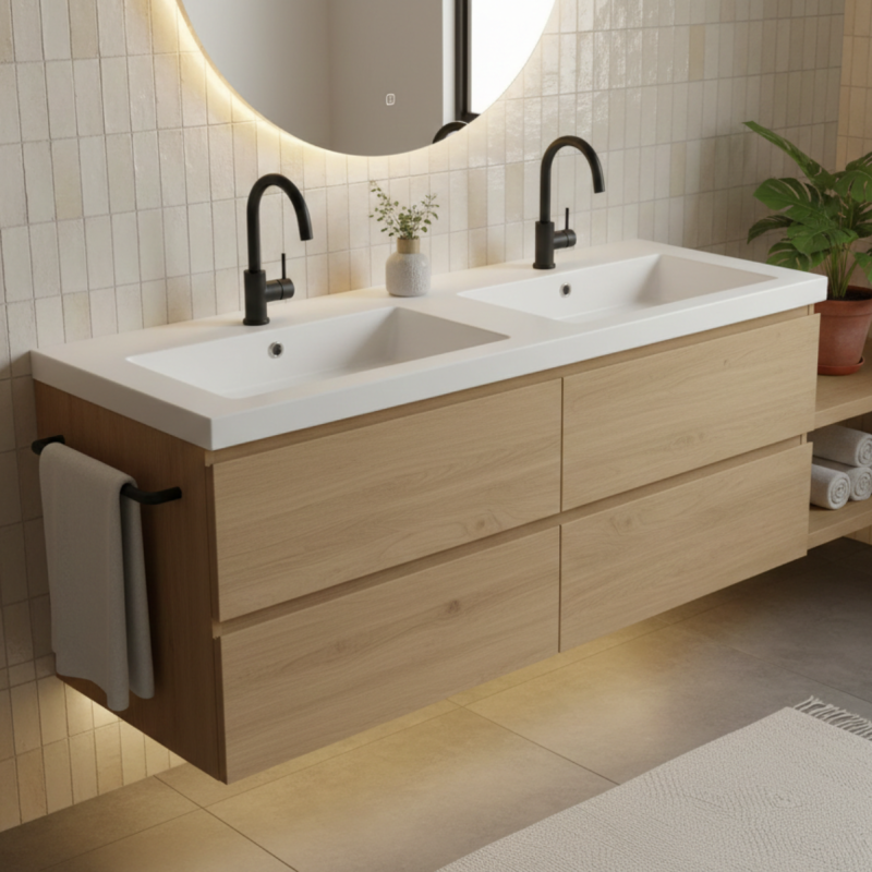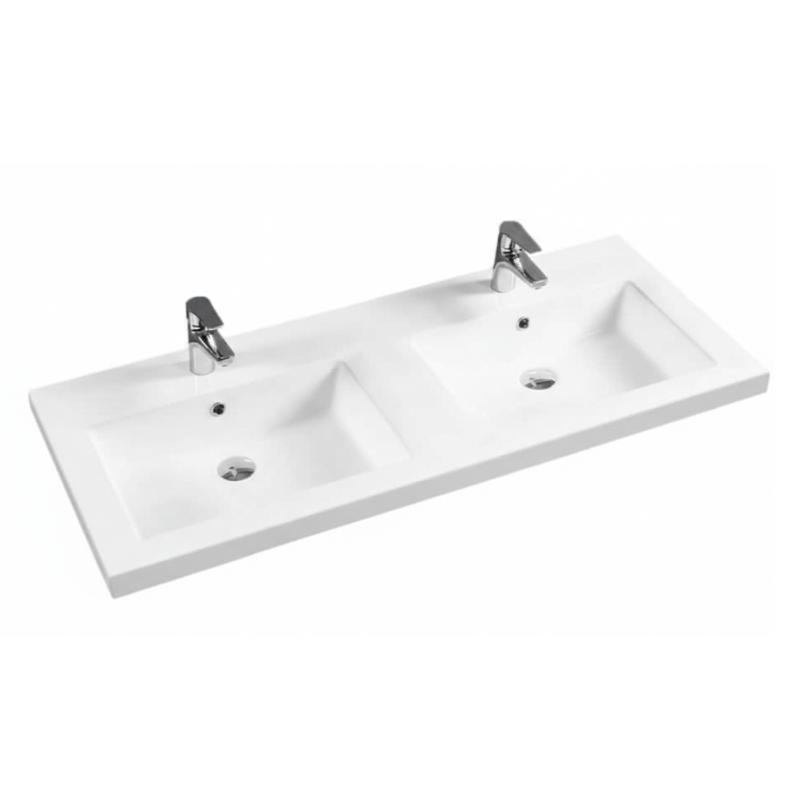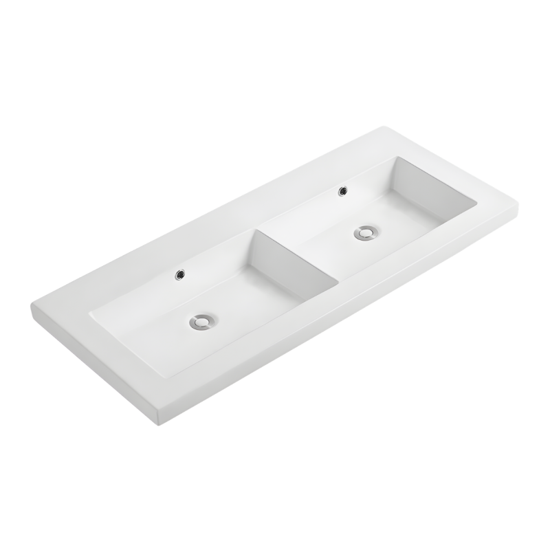 Double vasque à encastrer rectangulaire - 120 x 46 cm - Blanc brillant - LIVO