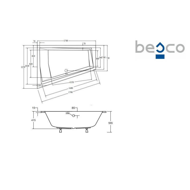 Baignoire asymétrique INTIMA DUO SLIM à encastrer, disponible en 150, 160, 170 et 180 cm.