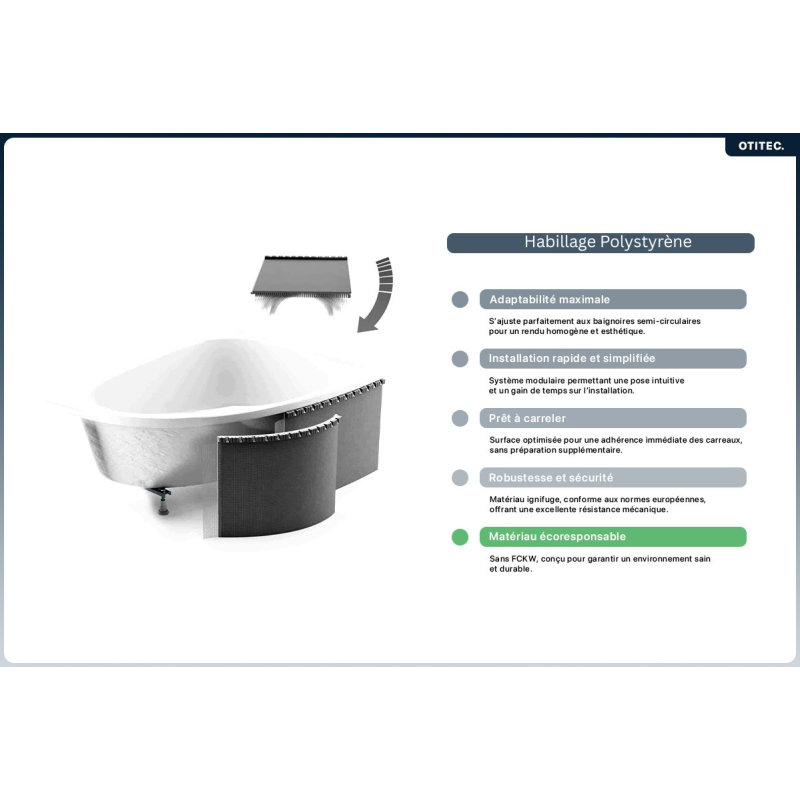 Baignoire asymétrique LUNA en 150 cm, disponible en angle gauche ou droit, avec ou sans tablier blanc ou noir.